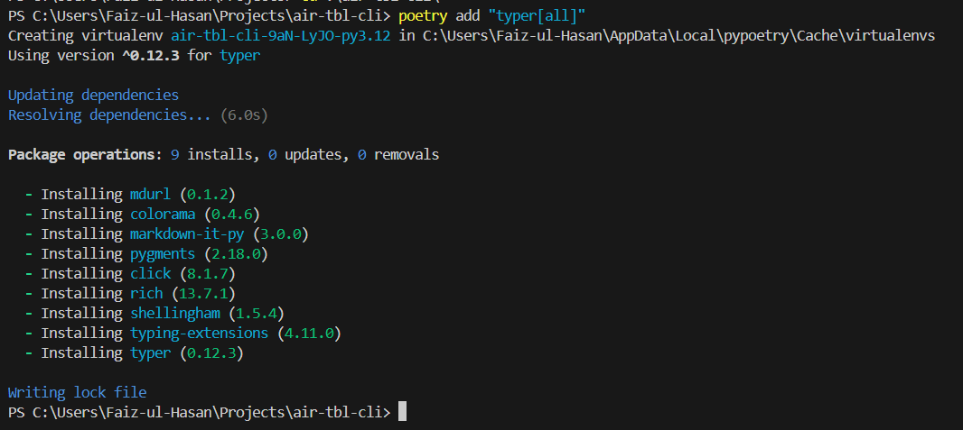 In this blog, we have walked through the steps to build a simple yet powerful command-line interface (CLI) using Poetry and Typer. We started by setting up a Python project with Poetry, then created a CLI app that interacts with Airtable APIs. You learned how to fetch records and list bases from Airtable, and how to package your CLI tool for easy installation.